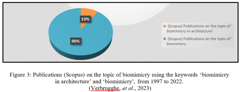 The novelty of BioMA combined with a lack of methodological clarity and a consistent definition, creates challenges in comprehending the full scope and impact of applying Biomimicry in Architecture (BiA). Figure 3 provides an illustrative comparison of publications on biomimicry and BiA indexed in Scopus from 1998 to 2022 (Verbrugghe, et al., 2023).